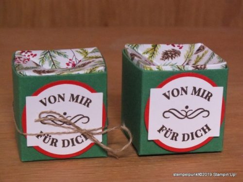 Heute zeige ich euch eine kleine Box – für eine Schokoladenkugel o.ä. – , die man oben öffnen kann. Mit dem passenden Video könnt ihr sie leicht nacharbeiten. Bei der auf dem Foto gezeigten Box habe ich das Designerpapier ‚Portrait der Jahreszeiten‘ (149574) und den darauf abgestimmten Farbkarton verwendet. Das Designerpapier gibt es bis Ende März im Rahmen der Sale-a-Bration gratis oder solange der Vorrat reicht.