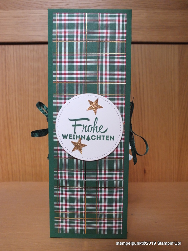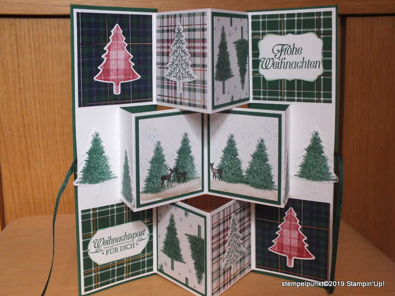 Ich habe das wunderschöne Designerpapier ‚Festliche Karos‘ und die Stempelsets ‚Tannen und Karos‘ sowie ‚Snow Front‘ aus dem neuen Herbst-/ Winterkatalog verwendet. Damit läute ich dann die Vorweihnachtsbastelei ein – mein erstes Weihnachtsprojekt in diesem Jahr.