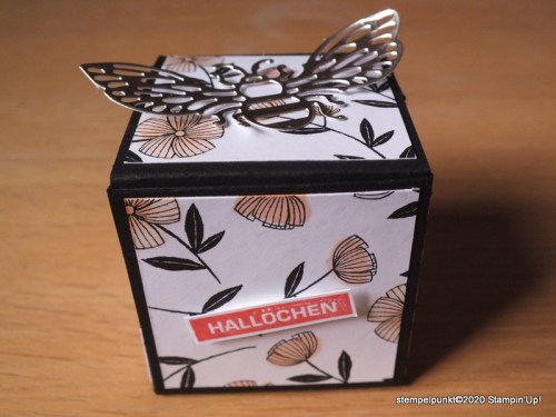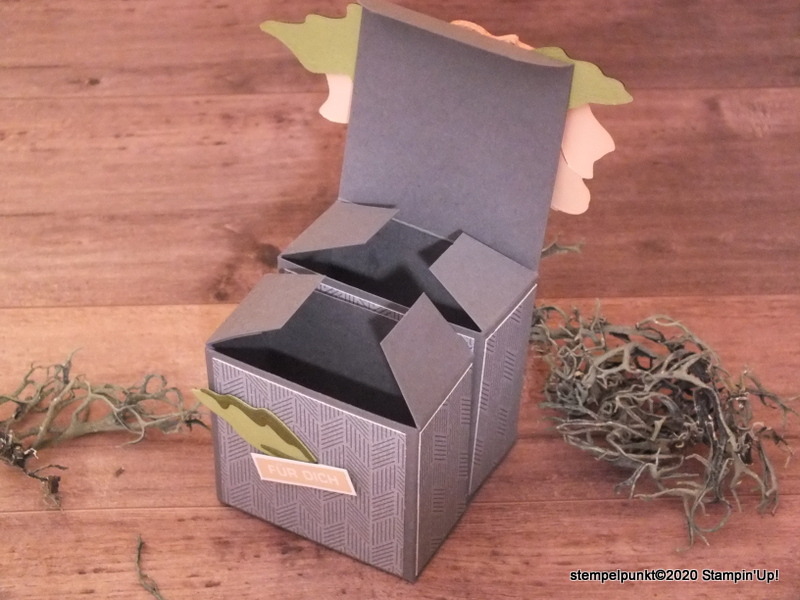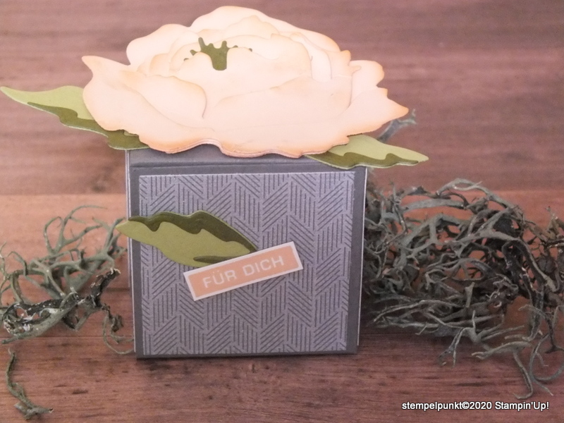 Am ersten und dritten Sonntag eines Monats gibt es einen Beitrag des Stempelzeit Teams mit einer Anleitung, die individuell von allen teilnehmenden Demonstratorinnen umgesetzt wird. Die heutige Anleitung für eine zweigeteilte Box kommt von mir.
