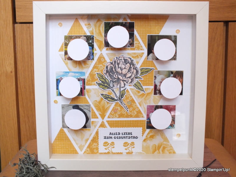Der Rahmen* mit Familenfotos ist ein Geschenk zu diesem besonderen Geburtstag. Fotos kommen immer wieder gut an. Es gibt so viele Möglichkeiten, diese mit Stampin‘ Up! in Szene zu setzen.