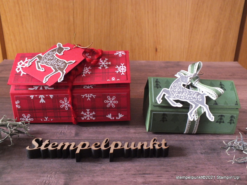 Bei meinem letzten Basteltreff (virtuell) haben wir diese niedliche Häuschen-Box gewerkelt. Sie ist hervorragend als Tischdekoration auf der weihnachtlichen Kaffeetafel geeignet. Und die große Box ist ein tolles Mitbringsel bei einem Adventsbesuch. Verwendet habe ich das superschöne Designerpapier ‚Weihnachtliche Prints‘, das es nur noch bis zum 30. September im Rahmen der Sale-a-Bration gratis bei einer Bestellung ab 60€ gibt. Am 27. September mache ich noch eine Sammelbestellung. Nutzt die Gelegenheit und lasst euch beschenken. Vielleicht möchtet ihr schon euer Weihnachtsgeschenk von Stampin‘ Up! bestellen. Das Papier ist ein Klassiker und kann euch in der gesamten Vorweihnachtszeit nützlich sein.