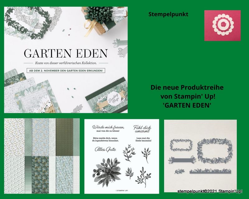 Inzwischen habe ich ein wenig mit den Produkten aus der Produktkollektion ‚Garten Eden‘ gespielt. Es handelt sich um Produkte aus dem Minikatalog Frühjahr/ Sommer 2022. Das traumhafte Designerpapier, das Baumwollpapier und die Schmucksteinchen wird es aber nur geben, solange der Vorrat reicht.