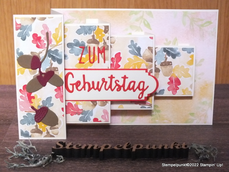 Ein Herbst- Geburtstagskind (Karo) hatte sich eine Geburtstagskarte nach einer Anleitung aus #karoskreativklub gewünscht. Dabei ist diese Z Fold Pop Up Block Karte entstanden.