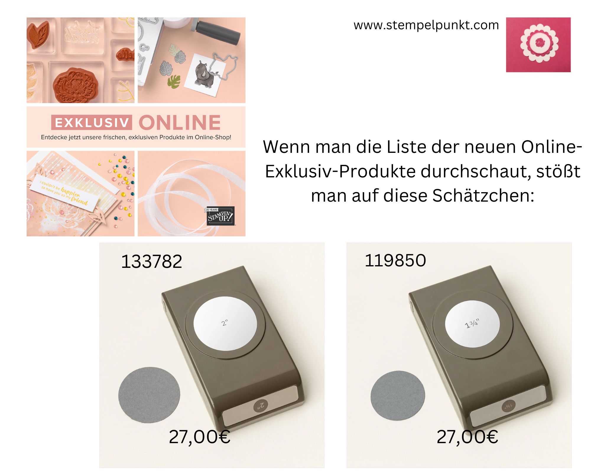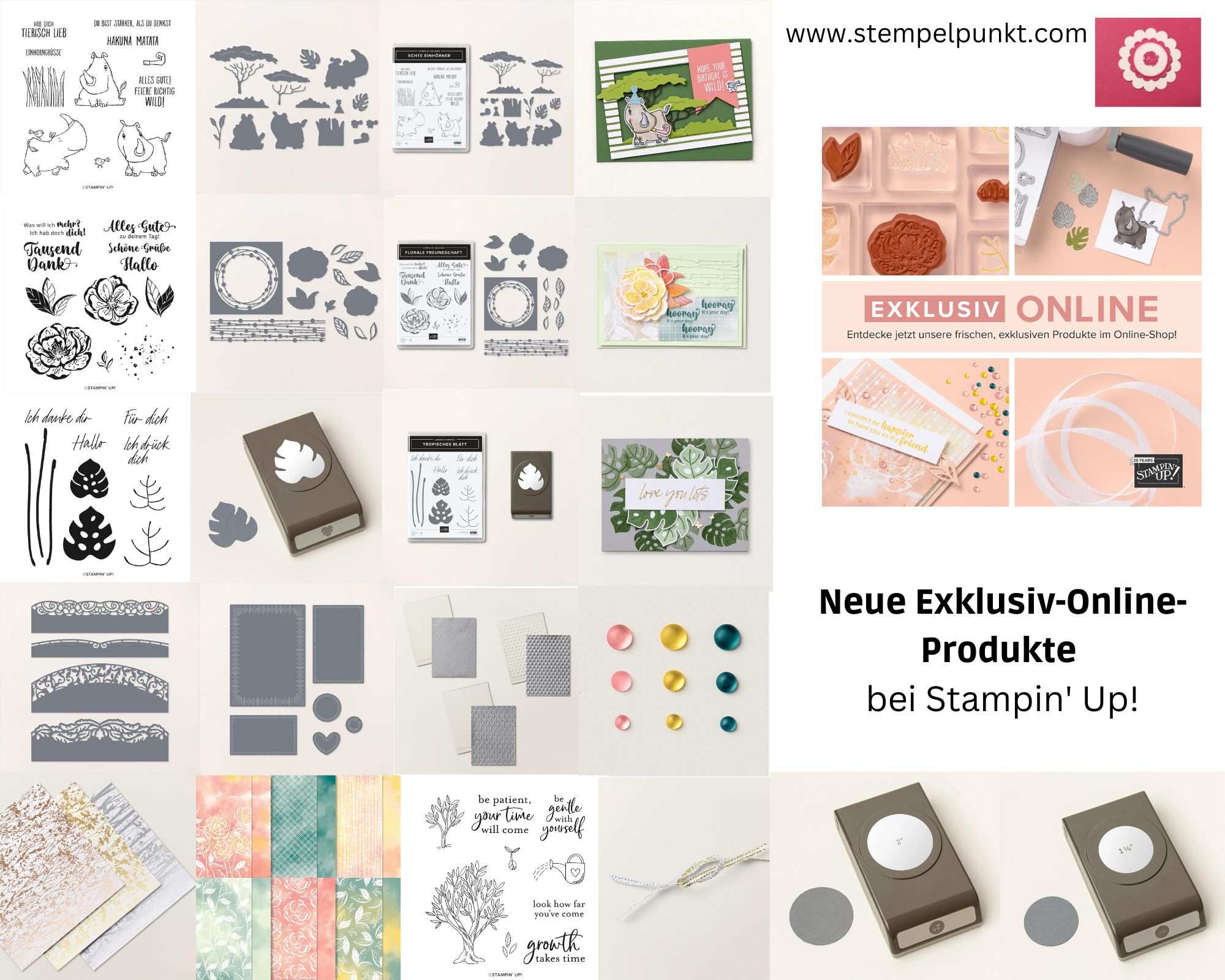 Diese neuen Produkte wird es in keinem Katalog von Stampin‘ Up! geben. Du findest sie nur online. Bestellen kannst du sie in meinem Online-Shop oder über mich (Bestellformular,…). Die ersten Produkte aus der Produktreihenkollektion ‚Faszinierend Floral‘ hast du schon bei mir gesehen. Wir Demos durften schon vorbestellen. Aber es gibt noch viele weitere wirklich schöne Stempelsets und Stanzformen. Schau mal –> hier.