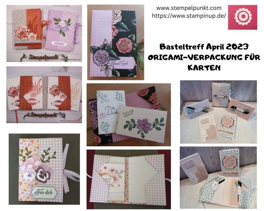 Auch im April gab es wieder einen BASTELTREFF PER ZOOM. Hier sind die Ergebnisse der Teilnehmer. Alle fanden die ‚Geschenkverpackung für Karten‘ super. Am 23. Mai (morgen) ist schon der nächste Basteltreff. Melde dich noch gerne bei Interesse (bis 23.5.23, 17.00 Uhr). Du brauchst den Zoom-Link von mir. Die Veranstaltung ist kostenlos. Wir haben viel Spaß dabei. Es wird gebastelt und gequatscht.