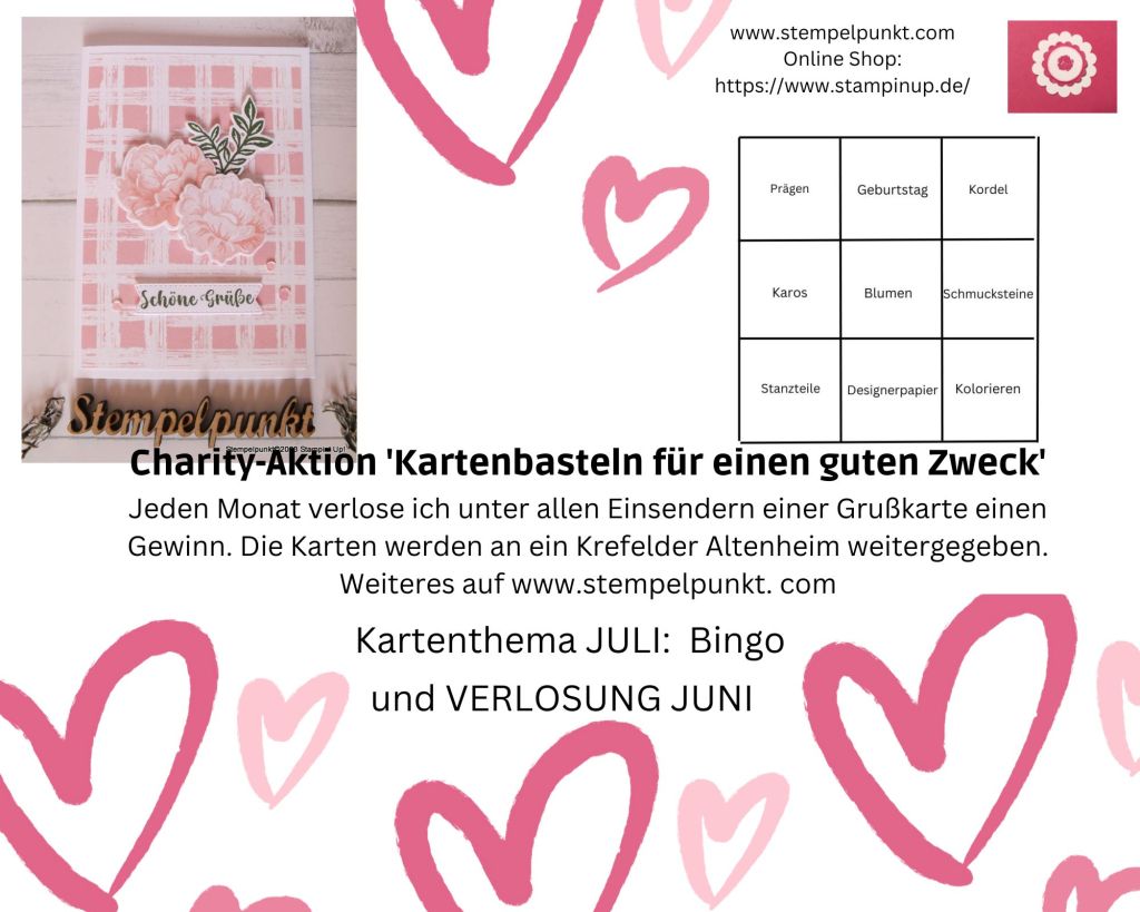 Mache auch im Juli mit, damit viele Karten für das Altenheim in Krefeld zusammenkommen. Das neue Thema wird im Video vorgestellt: ‚ein Bingo‘. Es gibt wieder etwas zu gewinnen.