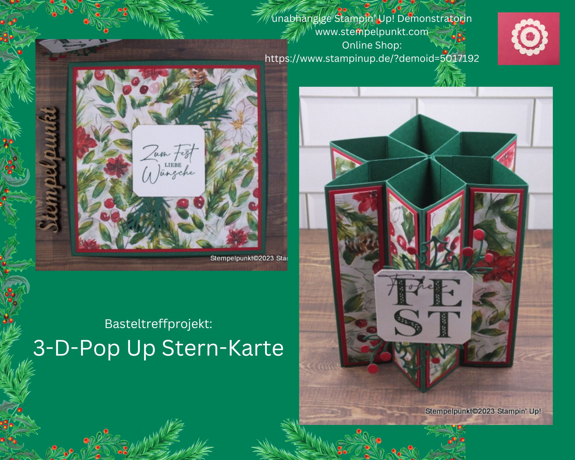Am letzten Dienstag haben wir diese tolle ‚3-D-Pop Up Stern-Karte‚** in meinem BASTELTREFF (1 x im Monat) gewerkelt. Die Karte hat sogar noch eine Verpackung zum Verschenken bekommen. Möchtest du auch gerne mitmachen? Für meine Kunden ist die Veranstaltung kostenlos.