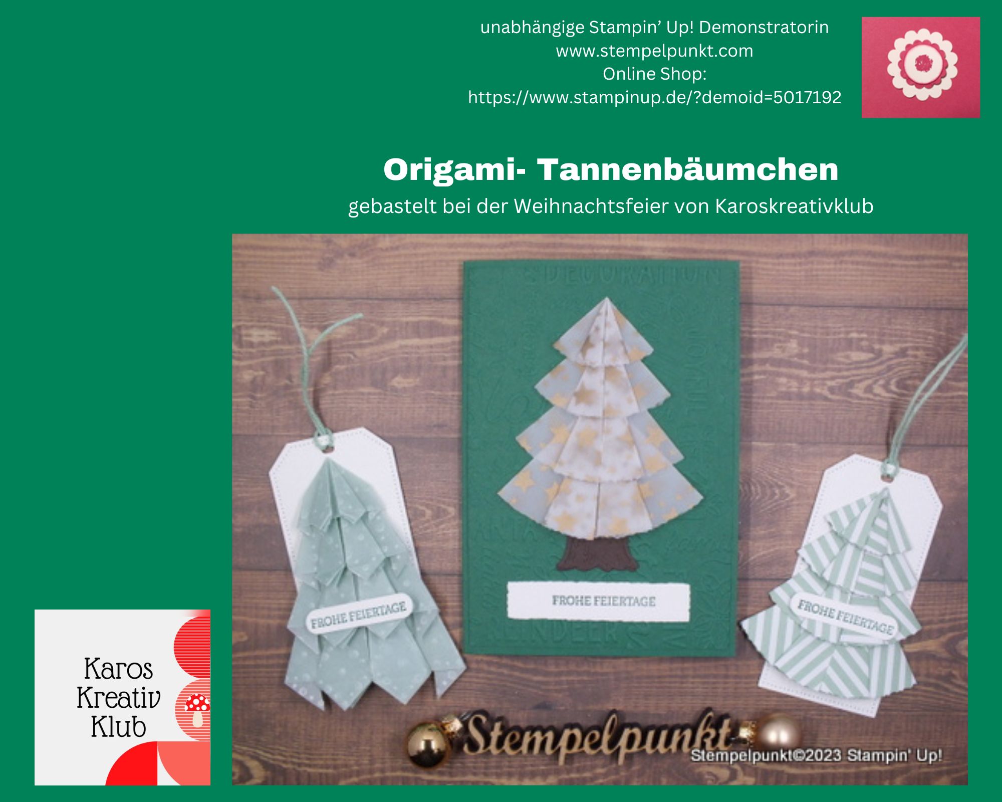 Am Dienstag war Weihnachtsfeier in Karoskreativklub. Es wurde gewichtelt, Bingo gespielt und gebastelt. Die ORIGAMI-WEIHNACHTSBÄUMCHEN sind schnell gemacht und verschönern kleine Tags, Grußkarten und Verpackungen. Hier siehst du meine Bäumchen.