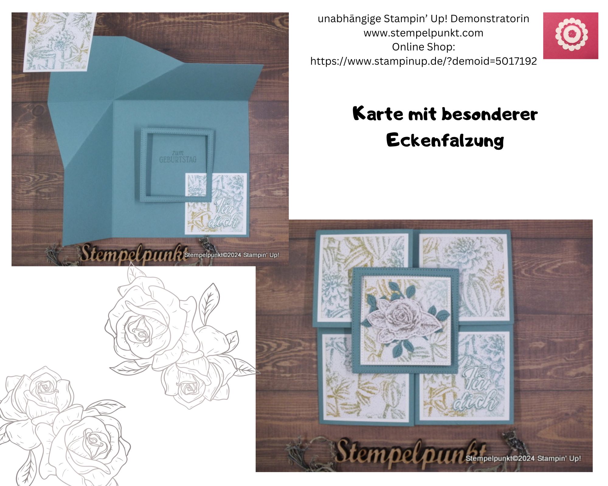 Heute zeige ich eine ganz raffinierte Karte- eine ‚Karte mit besonderer Eckenfalzung‚.