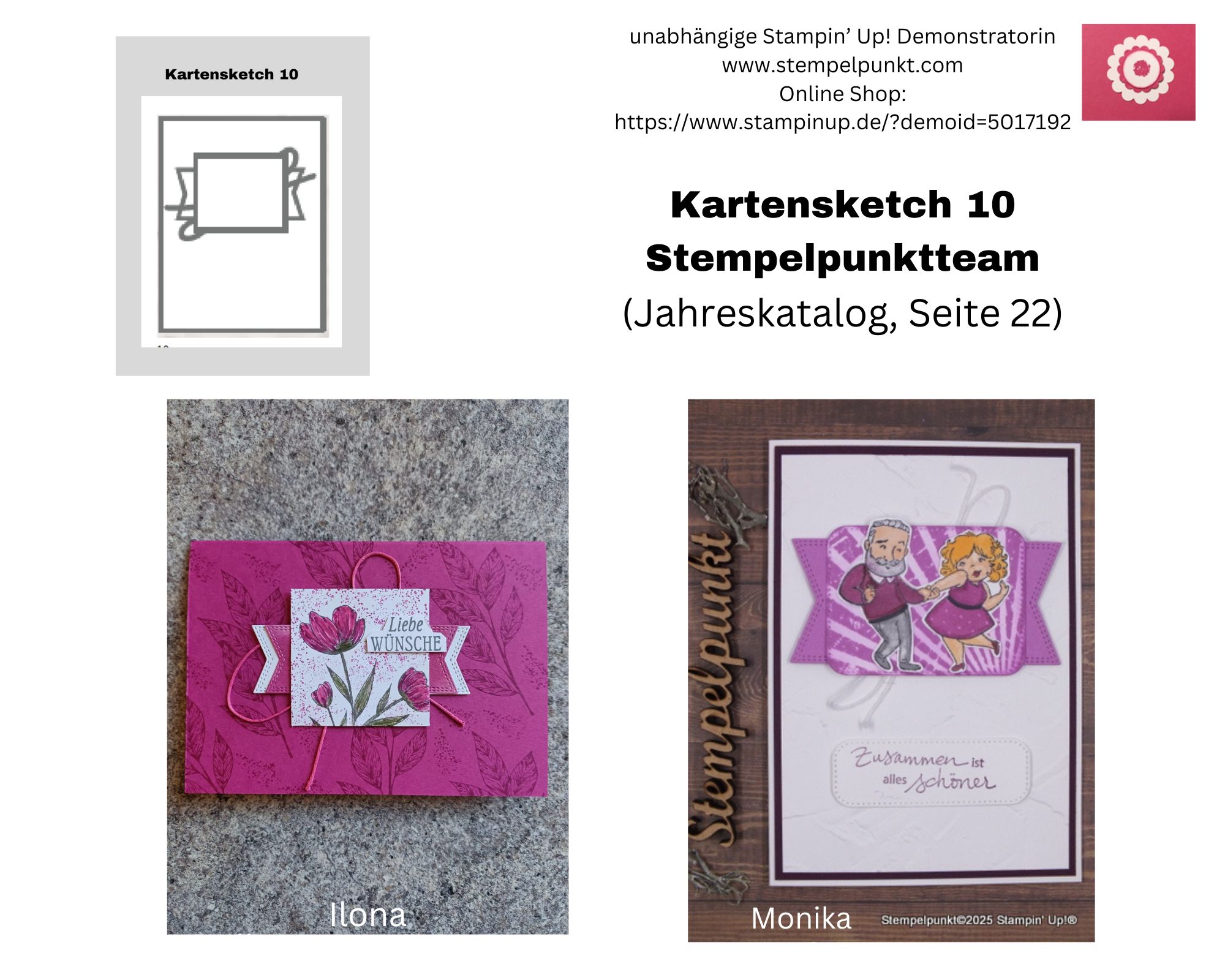 Im Stempelpunktteam läuft gerade eine Challenge mit den Sketch-Vorlagen aus dem Jahreskatalog von Stampin‘ Up! (unregelmäßig). Wir könnten noch Teilnehmer gebrauchen. Es macht so viel Spaß.