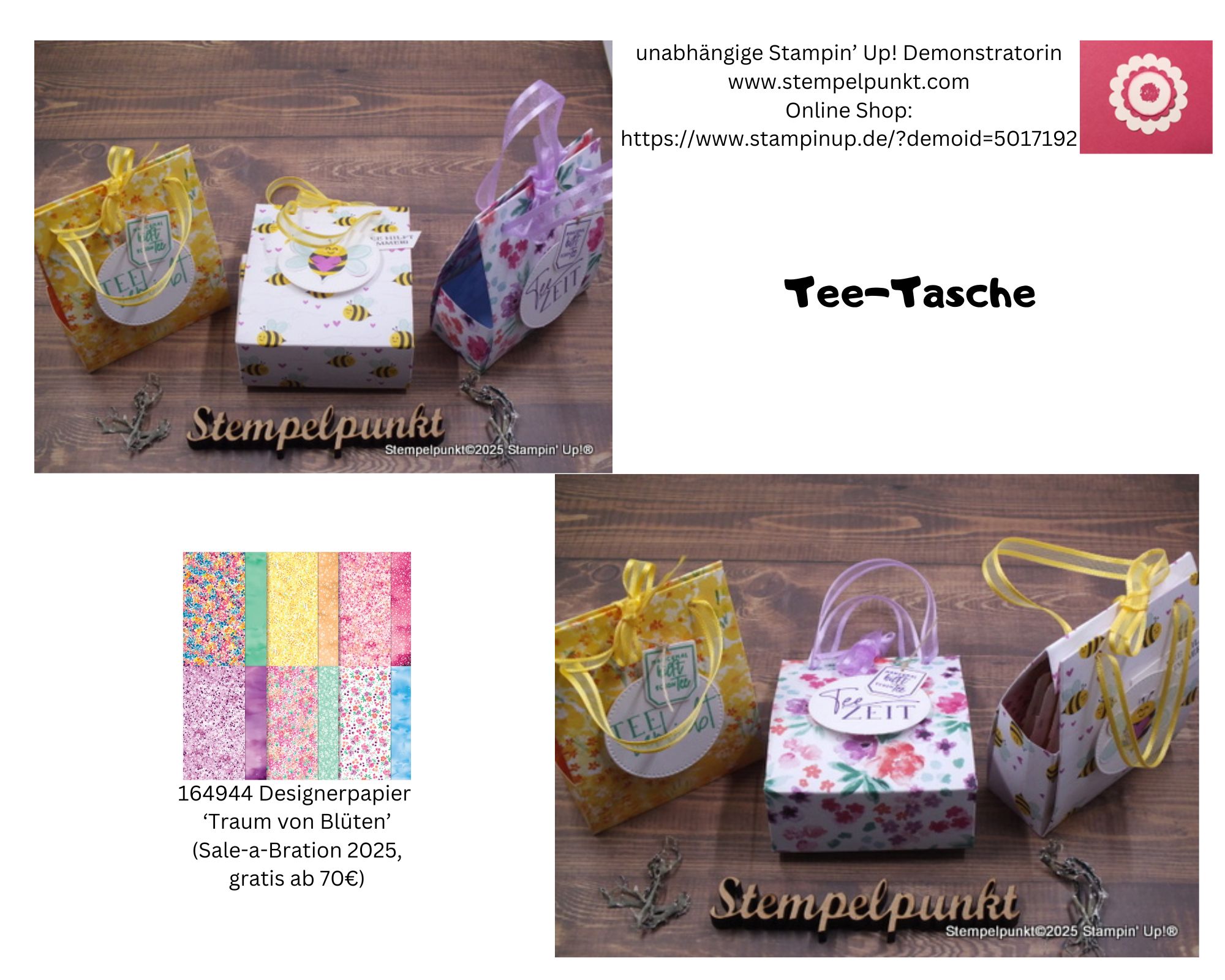 Diese kleine ‚Tee-Tasche’** haben wir u.a. am letzen Dienstag in meinem ‚Basteltreff‘ (per Zoom) gewerkelt. Wir haben immer viel Spaß. Wenn du auch einmal teilnehmen möchtest, dann melde dich gerne bei mir. Die Veranstaltung findet einmal im Monat statt. Der nächste Termin ist sinnigerweise nach Karneval: am 25. März.