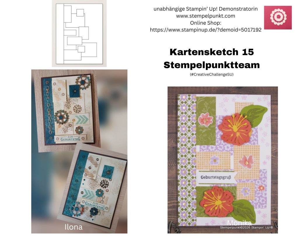 Im Stempelpunktteam gab es wieder eine Challenge einer Sketch-Vorlage von Stampin‘ Up! (#CreativeChallengeSU). Sie ist nicht ganz einfach. Aber man staunt, was herauskommt, wenn man im Flow ist.