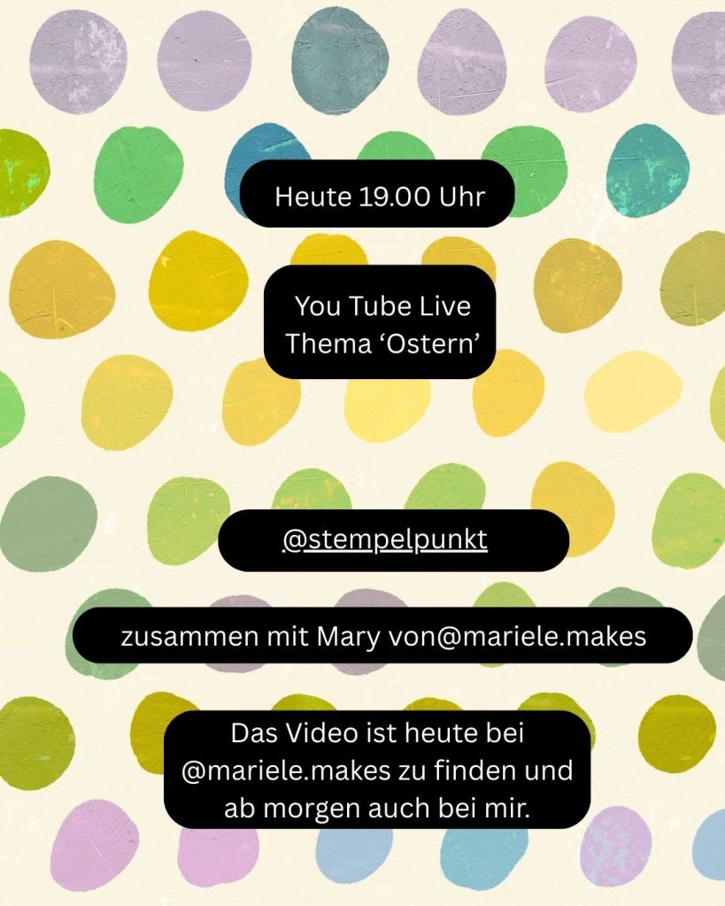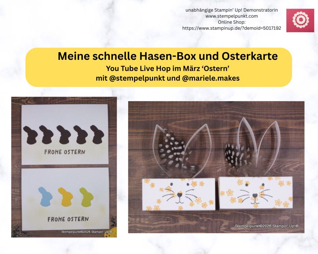 Heute haben @mariele.makes und ich @stempelpunkt in einem Live Video eine kleine Hasen-Box und eine schnelle Karte gebastelt. Schaut mal in unsere Video-Kanäle (bei mir mit Verzögerung).