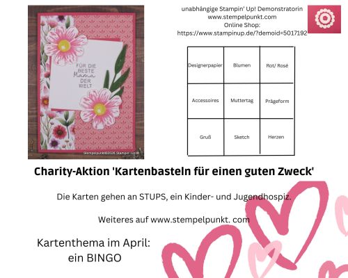 Im Video zur Charity-Aktion zeige ich eure gespendeten Karten vom März. Und wir machen weiter. Es gibt eine neue Vorgabe für den April – wieder ein Bingo, weil das so beliebt ist. Ich freue mich auf eure Karten. Anfang Mai gibt es ein neues Video dazu.