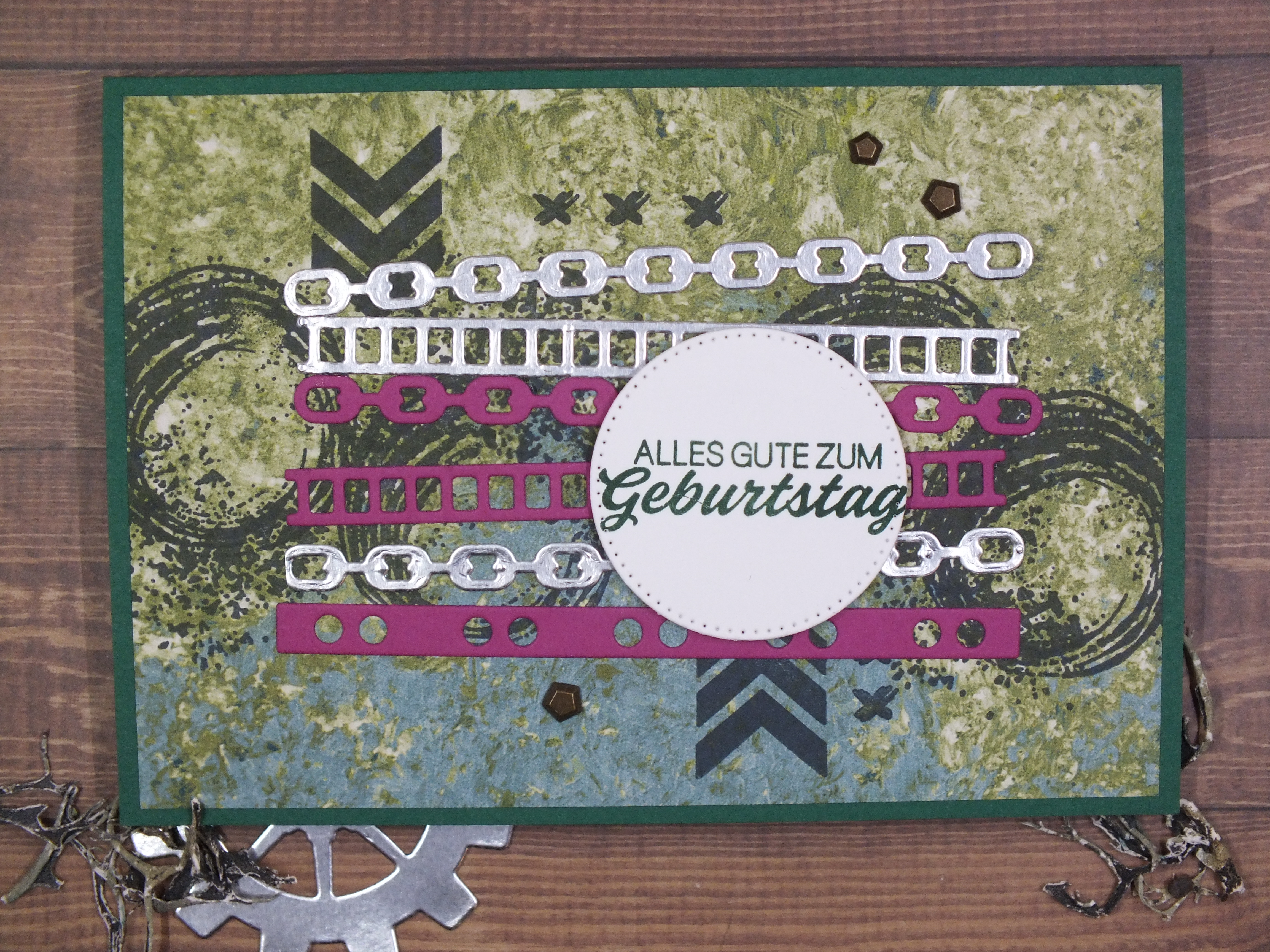 In dieser Woche geht bei mir alles um das Produktpaket ‚Gears & Textures‘. Es ist mein absoluter Favorit aus dem neuen Minikatalog. Auch diese karte ist ein Beispiel aus dem Minikatalog (Seite 53).
