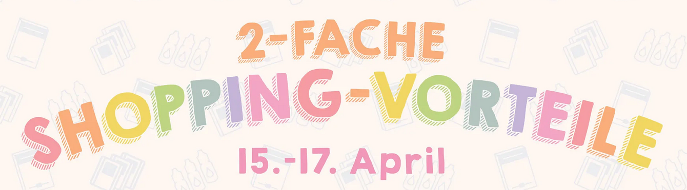 Vom 15. – 17. April gibt es doppelte Shopping-Vorteile bei Stampin‘ Up! Um von dem Angebot zu profitieren, benötigst du ein Stampin’ Up!-Konto. Außerdem musst dem Shopping-Vorteilsprogramm zugestimmt haben. Der Mindestbestell der Bestellung liegt bei 25€.