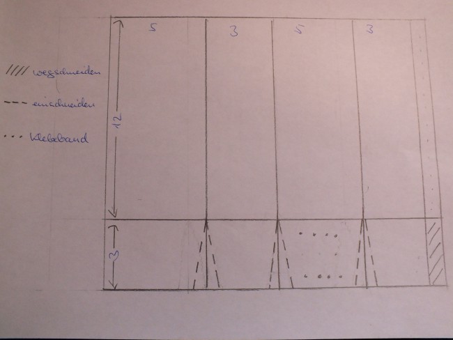 Es wird gefalzt und eingeschnitten (s. Skizze).