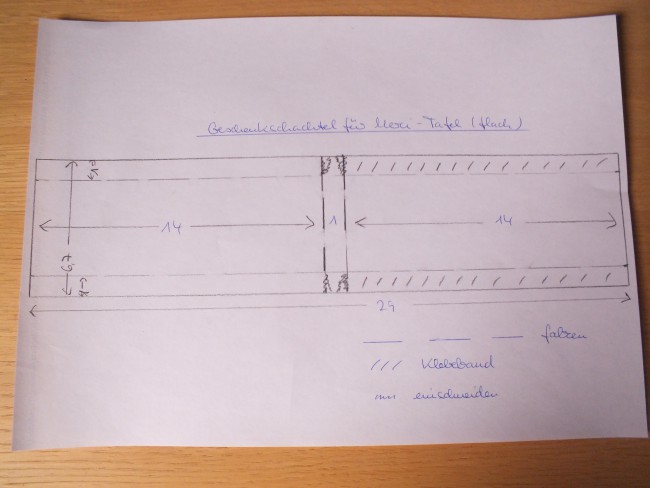 Fahne aus DSP in 5cm Breite und ca. 15cm Länge (nach hinten umklappen).