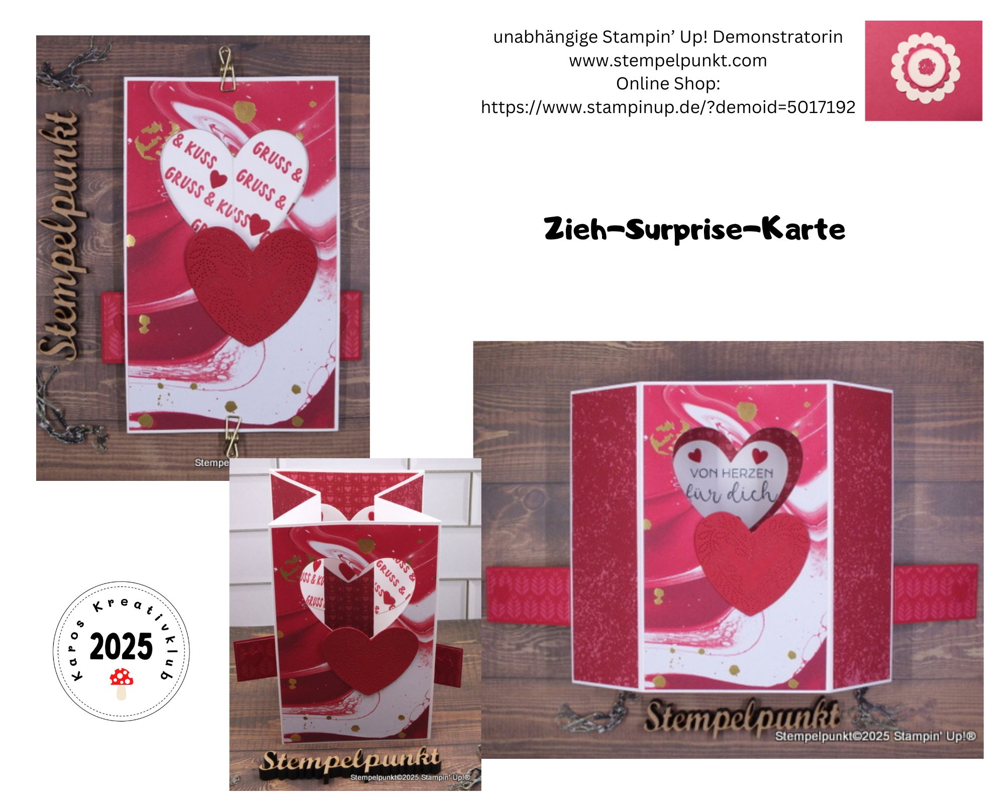 Am letzten Mittwoch gab es wieder ein virtuelles Treffen in @karoskreativklub. Wir haben eine ‚ZIEH-SURPRISE-KARTE‘ gebastelt. Ich habe das schöne Besondere Designerpapier ‚Marmorierte Eleganz‘ und die Stanzformen ‚Elegante Herzen‘ verwendet. Stanzformen aus diesem Set verlose ich sogar im Rahmen meiner Valentinstagsaktion.