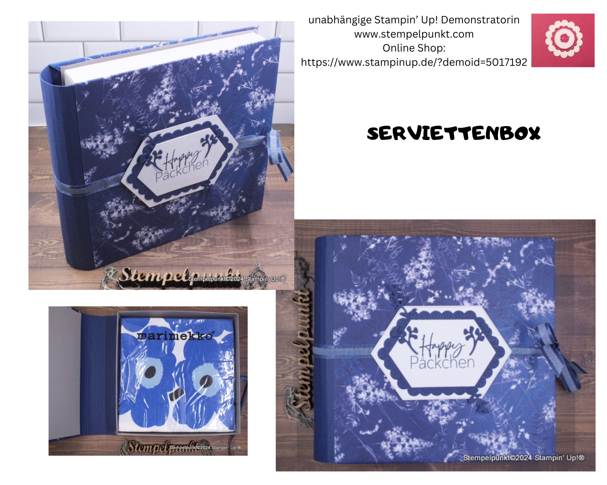 In unserer Stampin‘ Up! Netzwerkgruppe haben wir vor kurzem diese tolle SERVIETTENBOX nach einer Anleitung von Angelika gebastelt. Diese Box macht richtig etwas her.