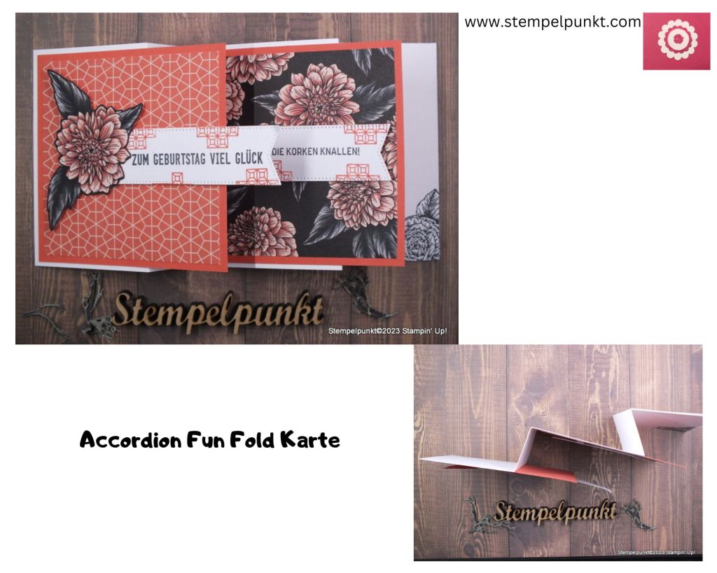 Heute zeige ich eine weitere ACCORDION FUN FOLD KARTE**. In meinem Beitrag vom 13. Januar findest du eine Version mit Wichteln. Es ist erstaunlich, wie unterschiedlich beide Karten wirken, je nachdem, welches Designerpapier man verwendet. In diesem Fall kam das wunderschöne Designerpapier ‚Beeindruckende Blumen‘ zum Einsatz. Noch bis zum 28. Februar hast du die Möglichkeit, dieses Papier als Gratisprodukt bei einem Bestellwert von 60€ zu bekommen (Sale-a-Bration).