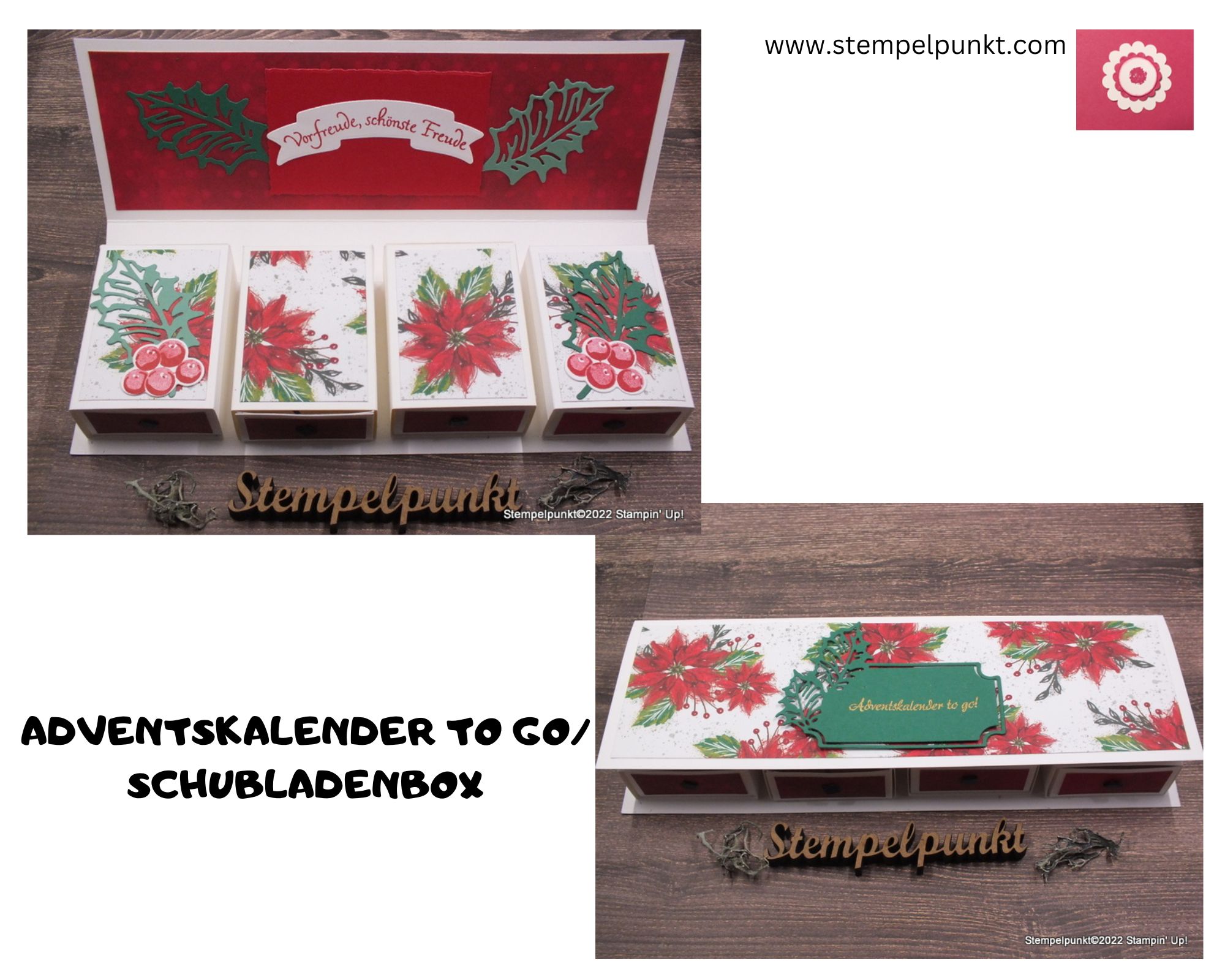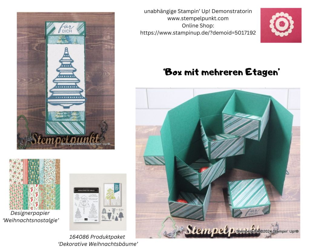 Heute zeige ich euch eine BOX MIT MEHREREN ETAGEN**. Dieses Projekt haben wir in meinem letzten ‚Basteltreff‘ per Zoom gebastelt. Alle waren begeistert. Die Box eignet sich auch perfekt für einen ‚Adventskalender to Go‘. Möchtest du wissen, wie die Box gebastelt wird? Dann schau morgen in meinen You Tube-Kanal (Stempelpunkt).