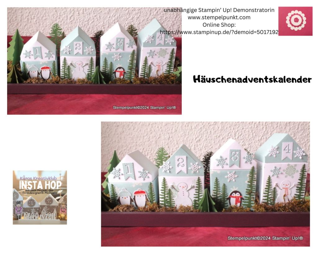 Am letzten Freitag haben wir diesen tollen Adventskalender in @karoskreativklub nach einer Anleitung von @michaelameixner gebastelt – eine wunderschöne Deko. Ich habe u.a. mit dem Produktpaket ‚Spass im Schnee‘ und dem Designerpapier ‚In der Schneekugel‘ von Stampin‘ Up! gearbeitet. Das Designerpapier für die Außenboxen habe ich selbst gestempelt und embosst. Die süßen Pinguine und Schneemänner kann man ganz einfach aus dem Designerpapier stanzen.