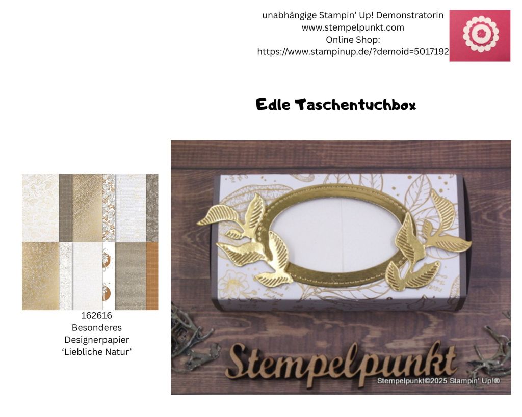 Im Rahmen des 15. You Tube Hop Stempelparadies & Friends mit dem Thema ‚Eine Verpackung mit Wow-Effekt zum Muttertag‘ zeige ich eine GESCHENKBOX MIT GUTSCHEINKARTE. Gearbeitet habe ich u.a. mit dem wunderschönen Designerpapier ‚Gartenblumen‘ von Stampin‘ Up!
