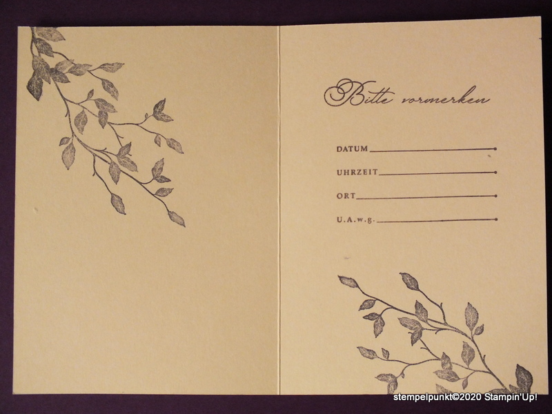 Ich hatte eine Hochzeitsfeier im Sinn. Und dafür braucht man Einladungskarten. Die habe ich vintagemäßig gestaltet, mit einer für eine Hochzeit unüblichen Farbe ‚Safrangelb‘. Die passt aber recht gut zu dem Vintage-Stil. Das Stempelset ‚Einfach einladend‘ aus dem Frühjahr-/ Sommerkatalog eignet sich perfekt für die Gestaltung von Einladungskarten.