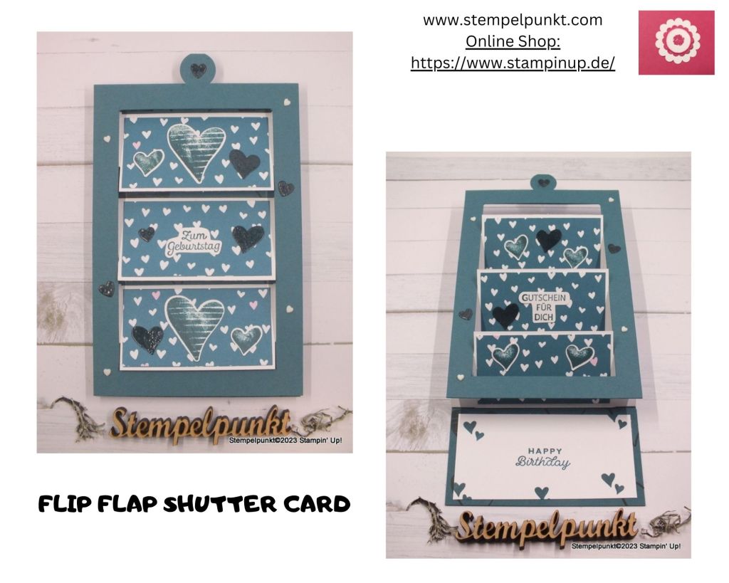 Am Freitag haben wir mit Carmen von #stempelmitmir diese FLIP FLAP SHUTTER CARD gebastelt. Ich finde sie total schön. Dekoriert habe ich mit dem Stempelset ‚Rusikaler Strauss‘ und den passenden Stanzen. Als Farbe habe ich ‚Pfauengrün‘ gewählt. Ist euch schon aufgefallen, dass das umfangreiche Designerpapier ‚Einfach elektrisch‘ Muster für jeden Anlass enthält? Ein Must Have!