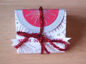 Heute zeige ich euch ein niedliches Explosionstäschchen. Das war ein Anleitungsswap bei einem unserer letzten Teamtreffen – leider ohne Namensangabe. Das Täschchen ist im Rahmen der Challenge 326 http://www.inkspire-me.com/ entstanden. Es waren die Farben ‚Glutrot‘, ‚Silber‘, ‚Flüsterweiß‘ und ‚Schiefergrau‘ vorgegeben. Ein Video dazu gibt es auch von Pinsel, Schere & Co.