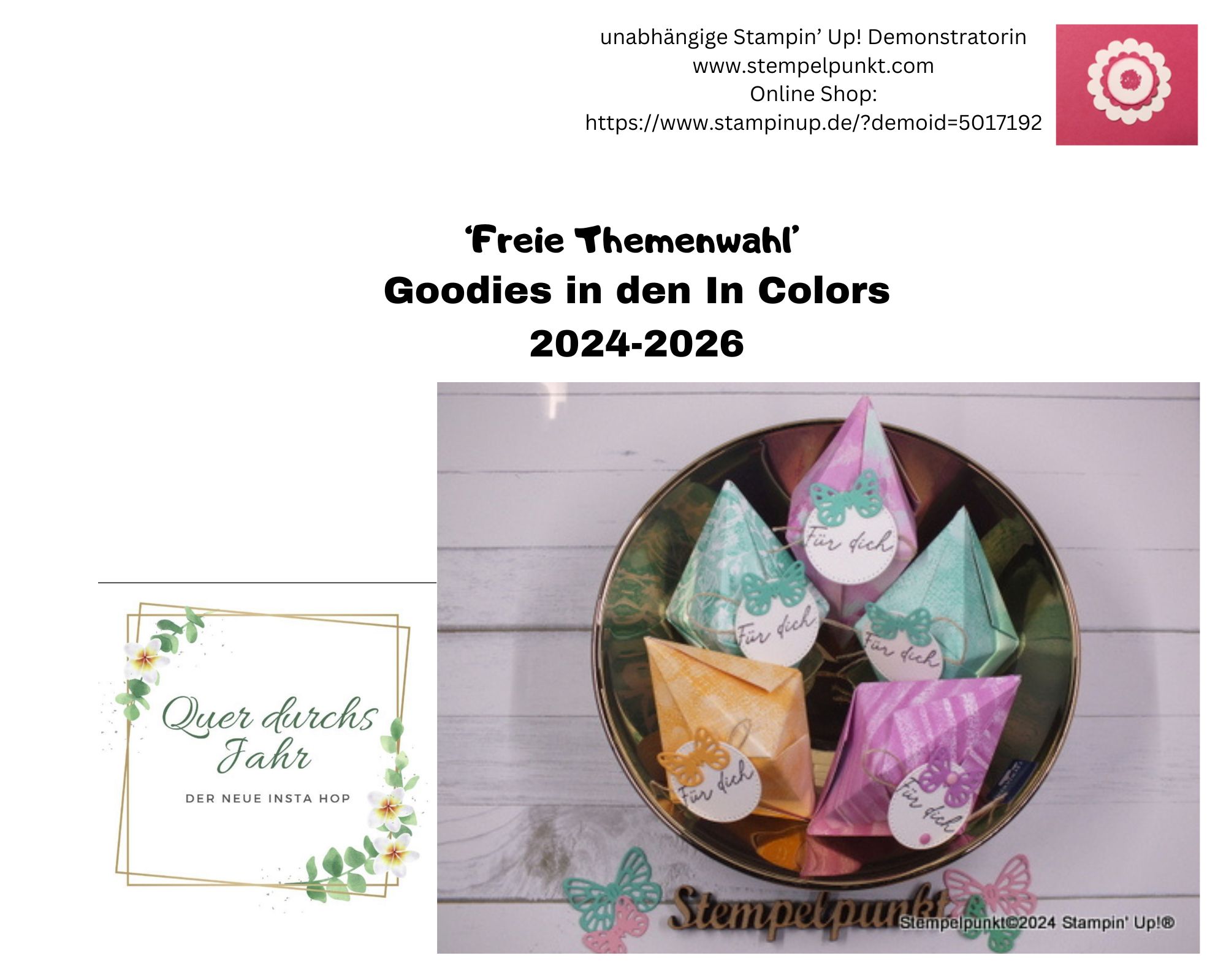 Beim Instahop Quer durchs Jahr gibt es diesmal ‚Freie Themenwahl‘. Ich habe mich entschieden für ‚GOODIES IN DEN IN COLORS 2024-2026′ **(Stampin‘ Up!).