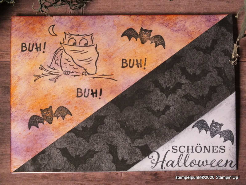 Meine erste Halloween-Karte in diesem Jahr. Ich finde das Eulen-Stempelset und das Halloween-Designerpapier aus dem Mini-Katalog einfach nur schön. Deshalb….