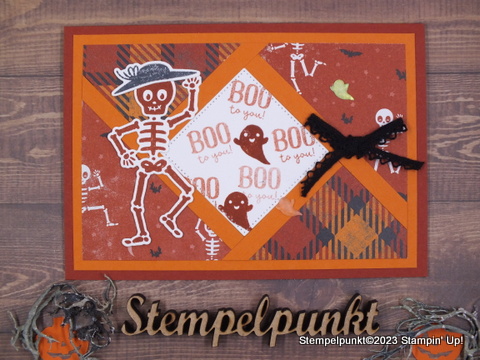 In dieser Woche dreht sich bei mir alles um das Thema ‚HALLOWEEN‘. Es macht Spaß, mit den beiden Produktpaketen von Stampin‘ Up! zu spielen: ‚Bag of Bones‘ und “Tricks & Treats‘. Am nächsten Sonntag gibt es noch eine Idee zu diesem Thema.