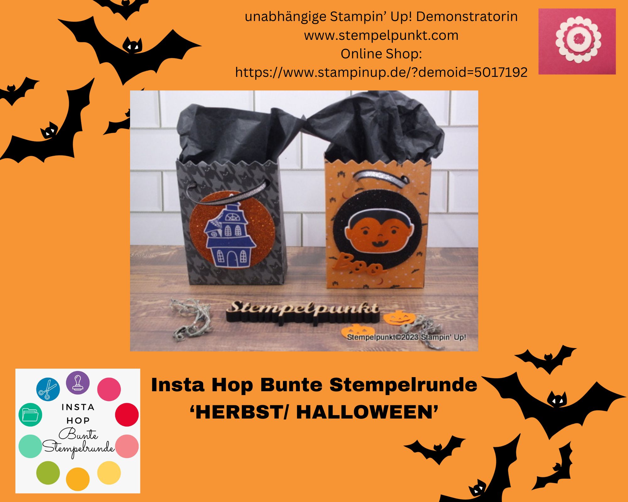Beim 9.Bunte Stempelrunde Insta Hop geht es um das Thema ‚HERBST/HALLOWEEN‚. Ich habe eine HALLOWEEN-GESCHENKTÜTE gewerkelt mit Produkten von Stampin‘ Up!