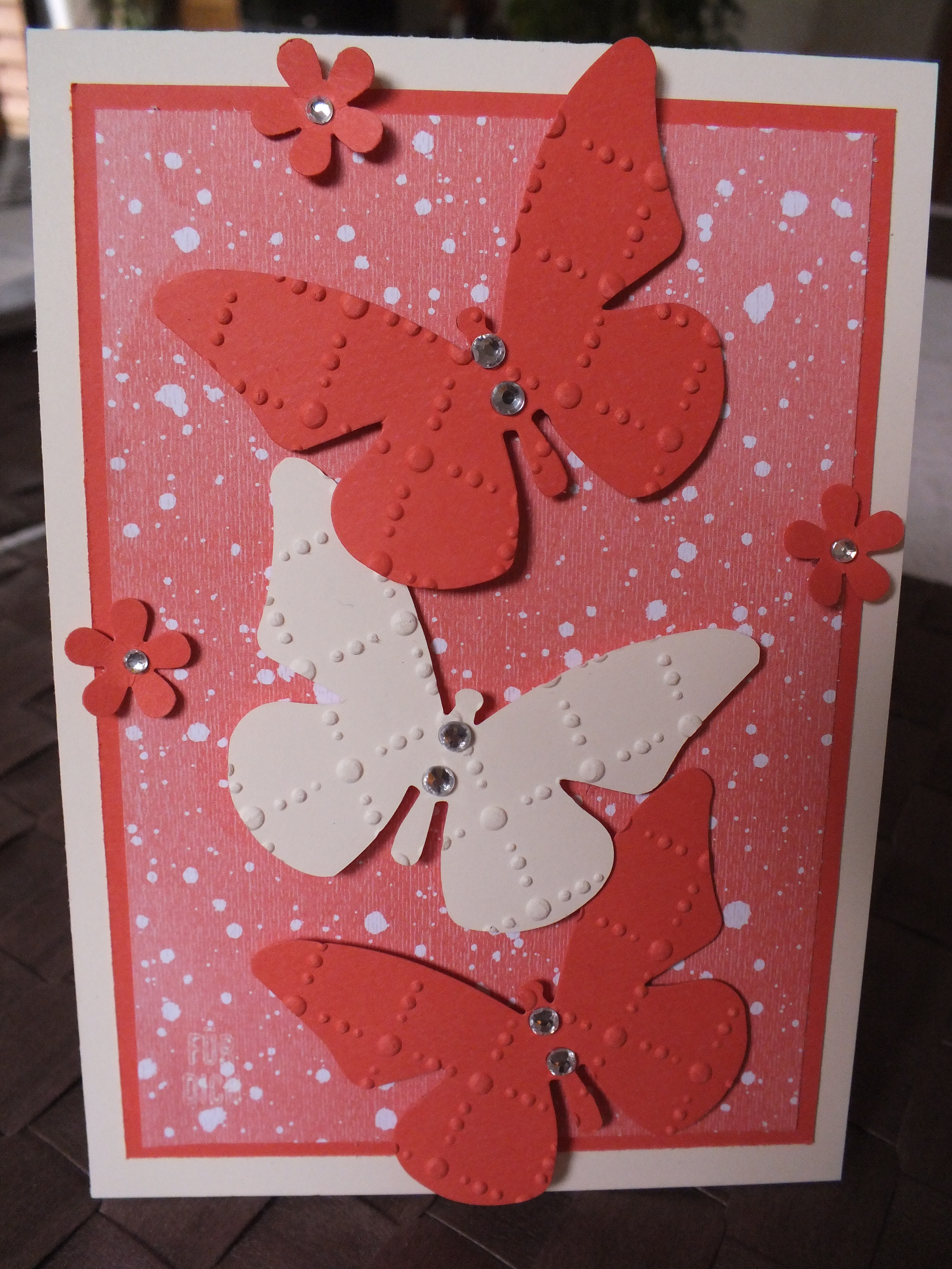 2 Stücke DSP (neu) 8,5cm x 5cm. Aufkleben. Vorderseite mit einer Schleife oder einem Bändchen verschönern.