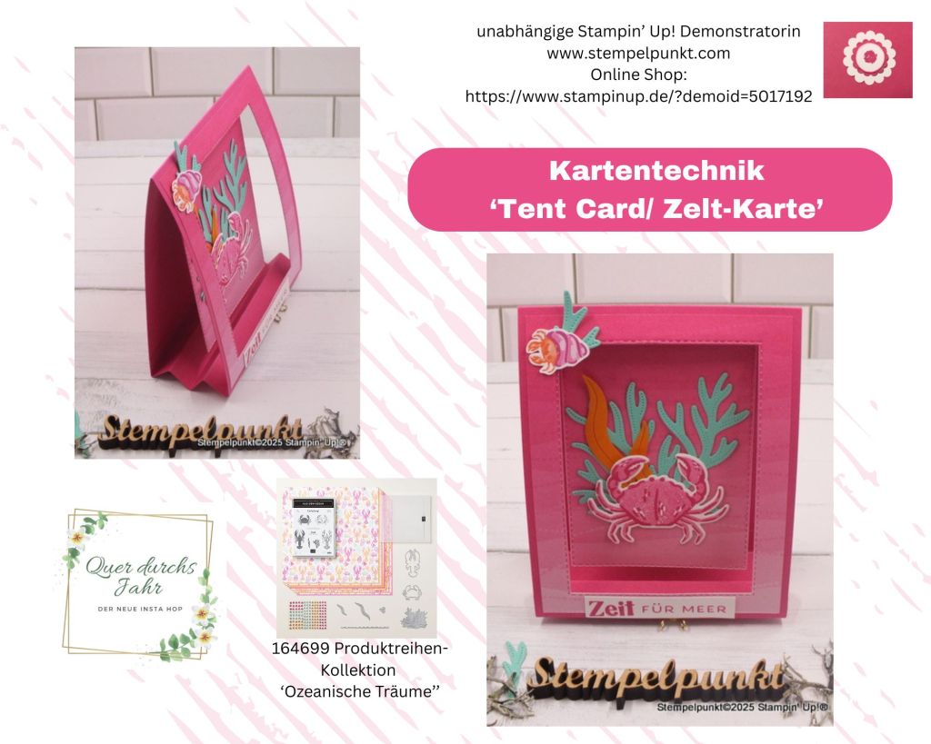 Beim Insta Hop Quer durchs Jahr haben wir heute ‚Freie Themenwahl‘. Ich habe mich für das Thema ‚KARTENTECHNIK‚ entschieden. Es ist eine ‚TENT CARD‚** entstanden. Verwendet habe ich die Produktreihen-Kollektion ‚Ozeanische Träume‘ von Stampin‘ Up!