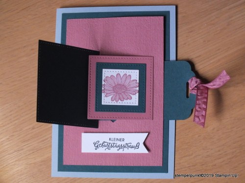 Heute zeige ich euch eine Flip Flap Karte. Sie hat einen Ziehmechanismus und wirkt wie ein kleines Buch. Mit Hilfe des Videos könnt ihr die Karte leicht nacharbeiten. Ich habe sie in den neuen In Colors gehalten, die ich diesmal ganz besonders schön finde.