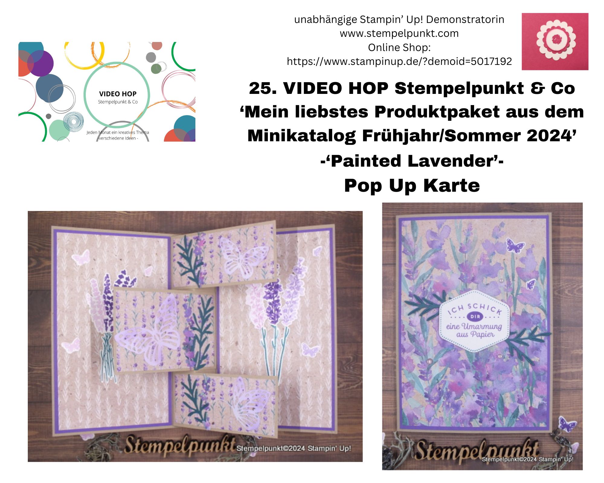 Heute gibt es den 25. VIDEO HOP von Stempelpunkt & Co. Einige Stampin‘ Up!-Demonstratorinnen haben sich zusammengetan, um euch an jedem 2. Samstag im Monat jeweils ein Video zu einem vorgegebenen Thema zu zeigen. Unser Thema im Februar ist ‚Mein liebstes Produktpaket aus dem Minikatalog Frühjahr/Sommer 2024‘.