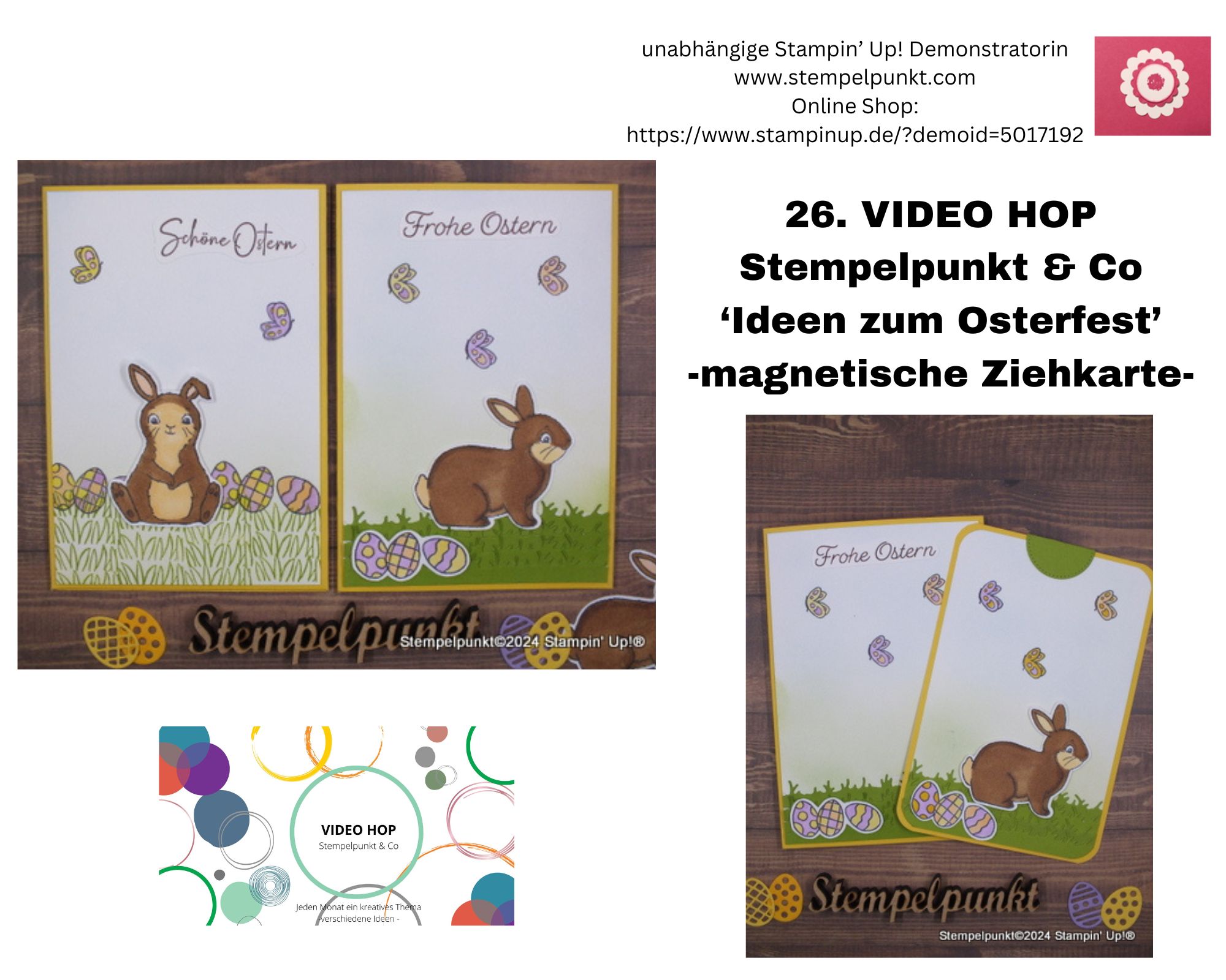 Heute gibt es den 26. VIDEO HOP von Stempelpunkt & Co. Einige Stampin‘ Up!-Demonstratorinnen haben sich zusammengetan, um euch an jedem 2. Samstag im Monat jeweils ein Video zu einem vorgegebenen Thema zu zeigen. Unser Thema im März ist ‚Ideen zum Osterfest‘.