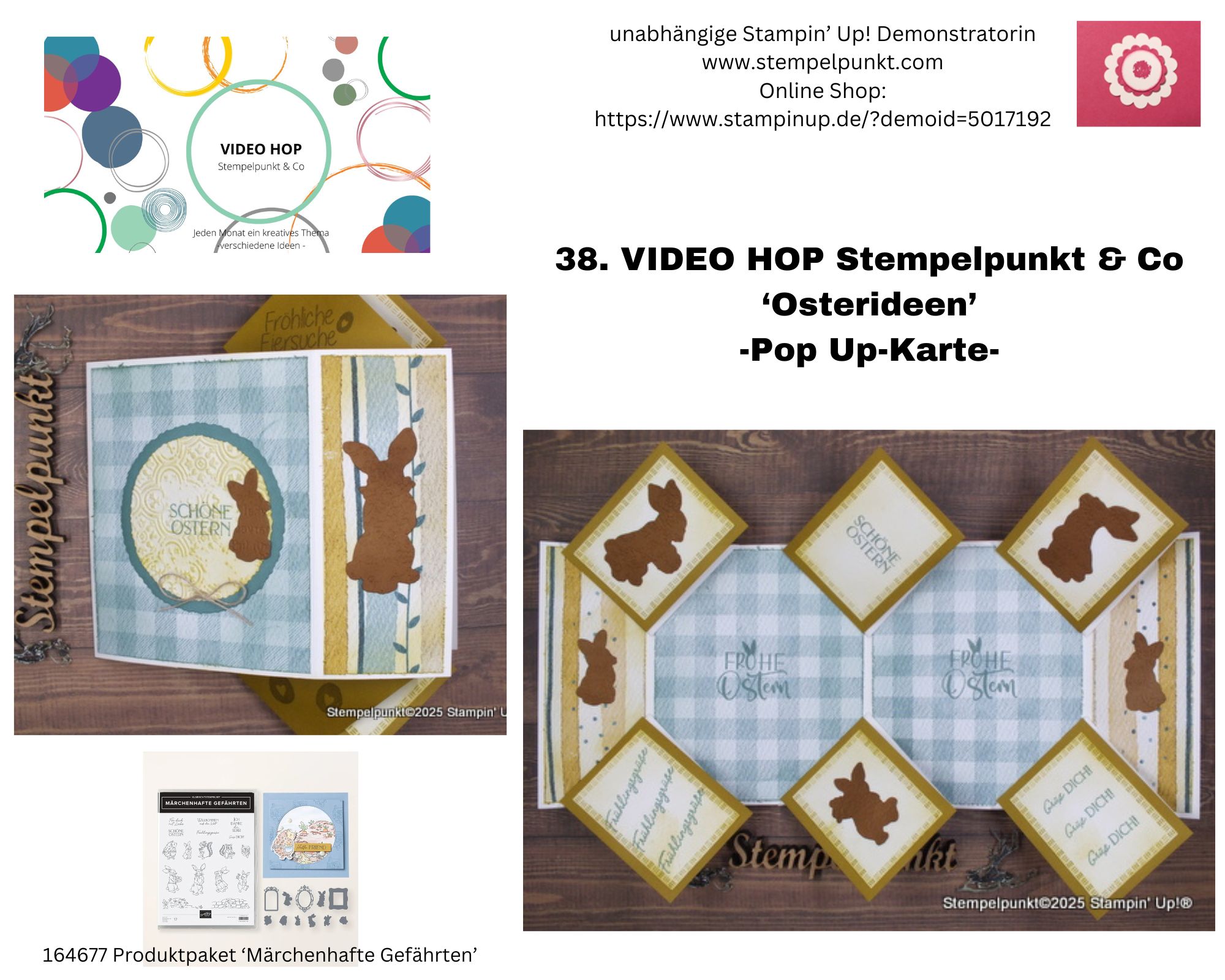 Heute gibt es den 38. VIDEO HOP von Stempelpunkt & Co. Einige Stampin‘ Up!-Demonstratorinnen haben sich zusammengetan, um euch an jedem 2. Samstag im Monat jeweils ein Video zu einem vorgegebenen Thema zu zeigen. Unser Thema im März ist ‚OSTERIDEEN‘.