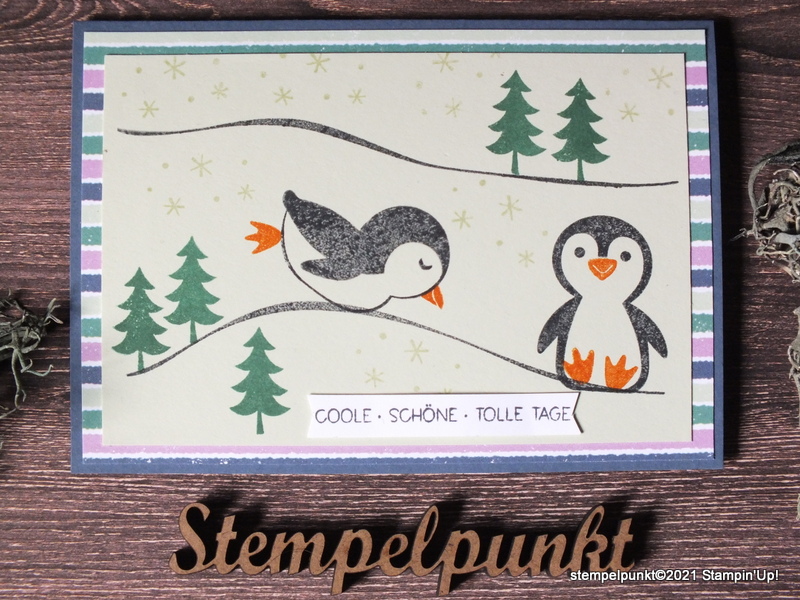 Beim Instagram- Projekt #Simple Stamping ist das Thema im August beliebig. Aber es soll ein Sale-a-Bration-Produkt verwendet werden. Mein derzeitiger Favorit ist das DESIGNERPAPIER ‚ PINGUIN & CO‘. Dieses tolle Designerpapier gibt es z. Zt. gratis bei einer Bestellung in Höhe von 60€ (bis zum 30. September). Und es ist passend zum Produktpaket ‚Pinguin-Party‘ (156791/Minikatalog, Seite 33/ 10% sparen im Paket). Deshalb kamen auch diese Produkte bei meinem Projekt zum Einsatz.