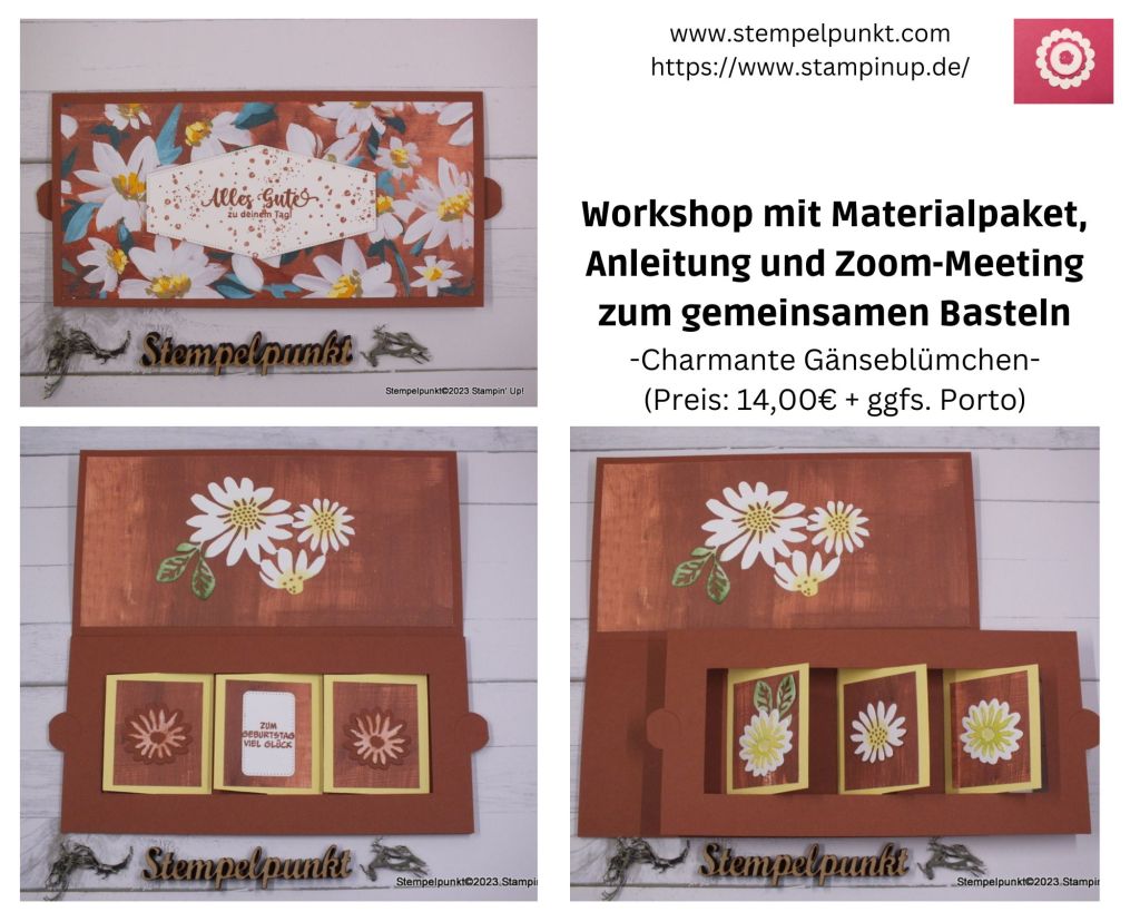 Du möchtest Stampin‘ Up!- Produkte gerne günstiger einkaufen? Du lernst gerne neuen Leute kennen? Oder du bastelst gerne alleine. Alles ist möglich. Frage mich einfach. Du stellst dir dein Starterset mit Produkten nach eigener Wahl im Wert von 175€ zusammen und zahlst nur 129€ dafür. Außerdem gibt es Geschäftsmaterial, Aktionen in meinem Team und meine Unterstützung. Genaueres hier –> https://stempelpunkt.com/demo-werden/