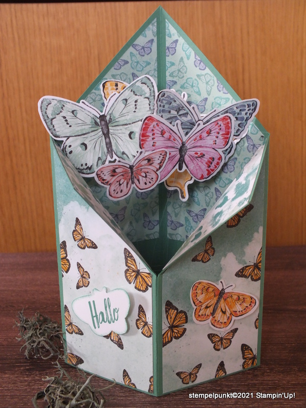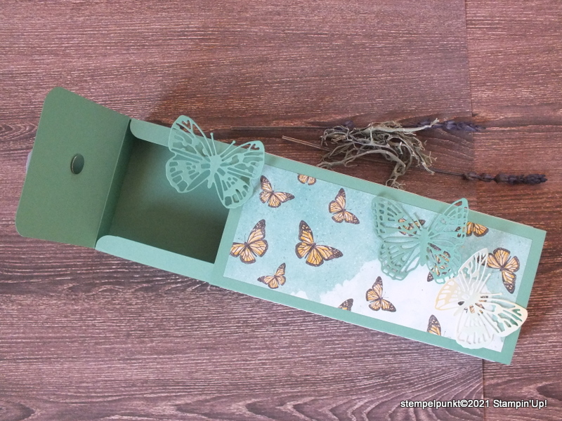 Gesehen habe ich diese Technik bei Linda Dahlke. Ich habe die Stanzformen ‚Schmetterlings-Mix‘ von