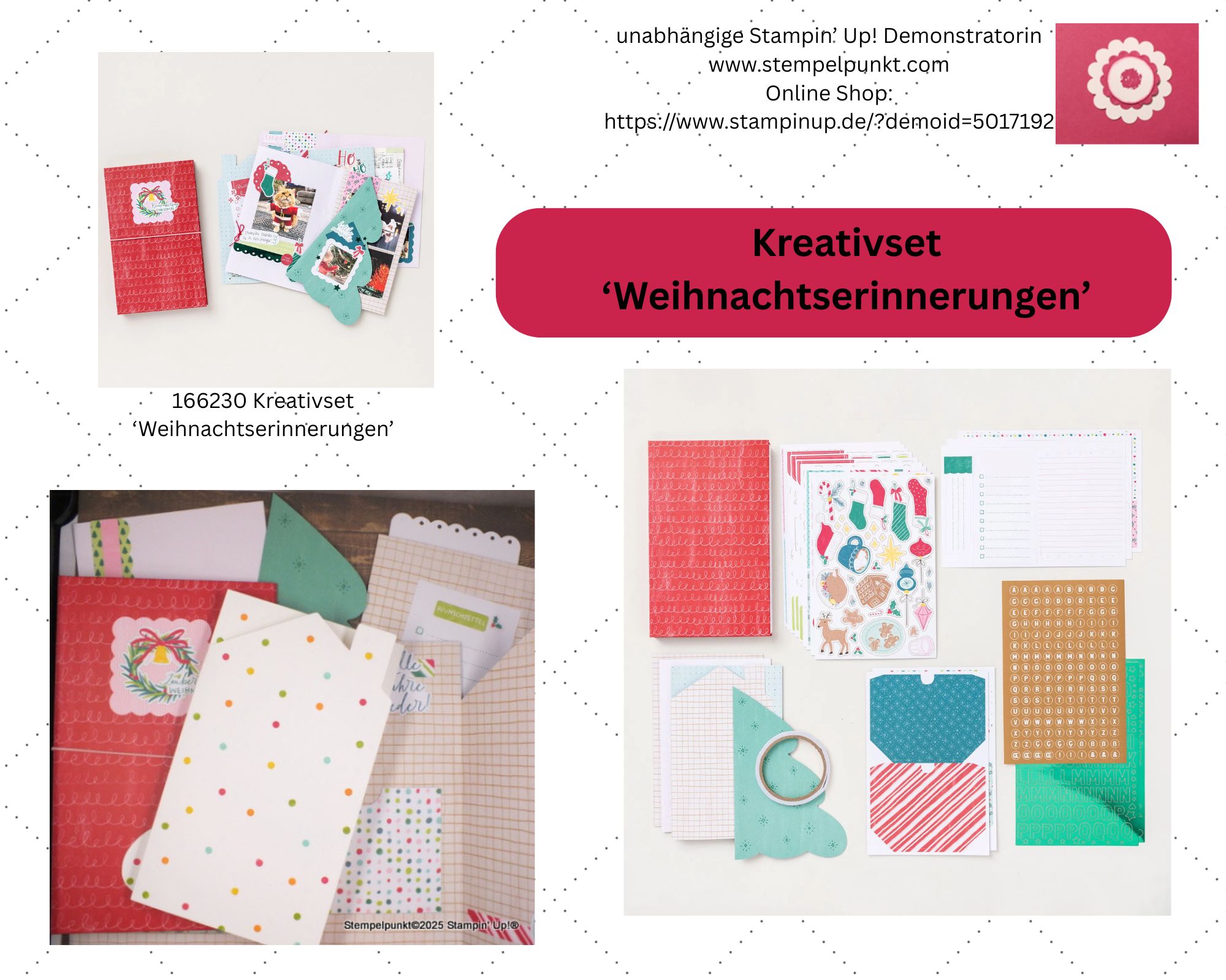 In diesem Video stelle ich das KREATIVSET ‚WEIHNACHTSERINNERUNGEN‘ von Stampin‘ Up! vor. Mit diesem Album kann mein seine Erinnerungen an das Weihnachtsfest mit den Kindern/Enkelkindern festhalten. Und zusätzlich zeige ich weitere Möglichkeiten, was man mit diesem Set noch machen kann. Ein Set für unterwegs, für Anfänger oder auch für Fortgeschrittene, die richtig kreativ sein möchten.