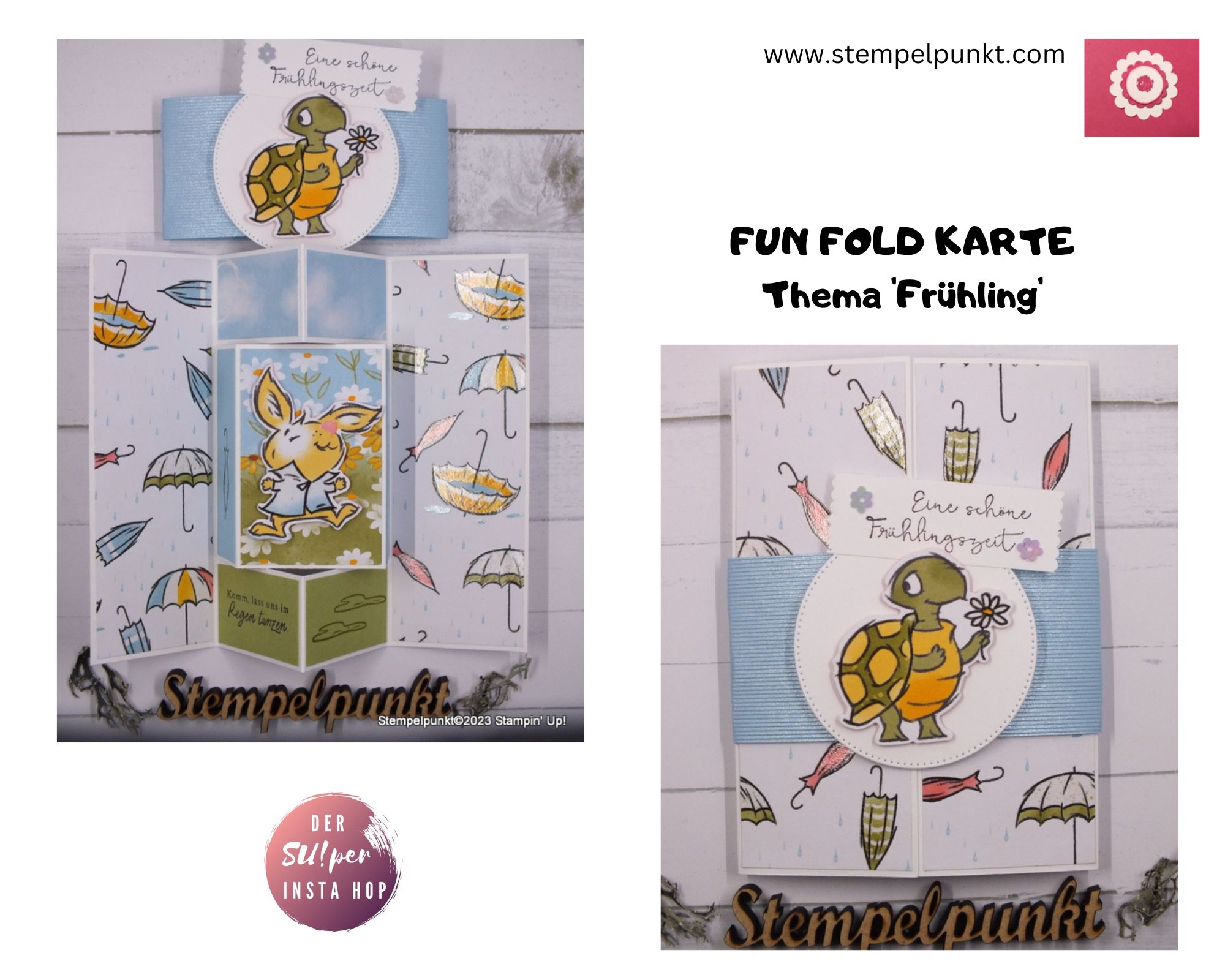 Das Thema im Februar ist ‚FRÜHLING‘. Ich zeige eine FUN FOLD KARTE**. Gearbeitet habe ich mit der Produktreihe ‚Alle Wetter‘ von Stampin‘ Up!