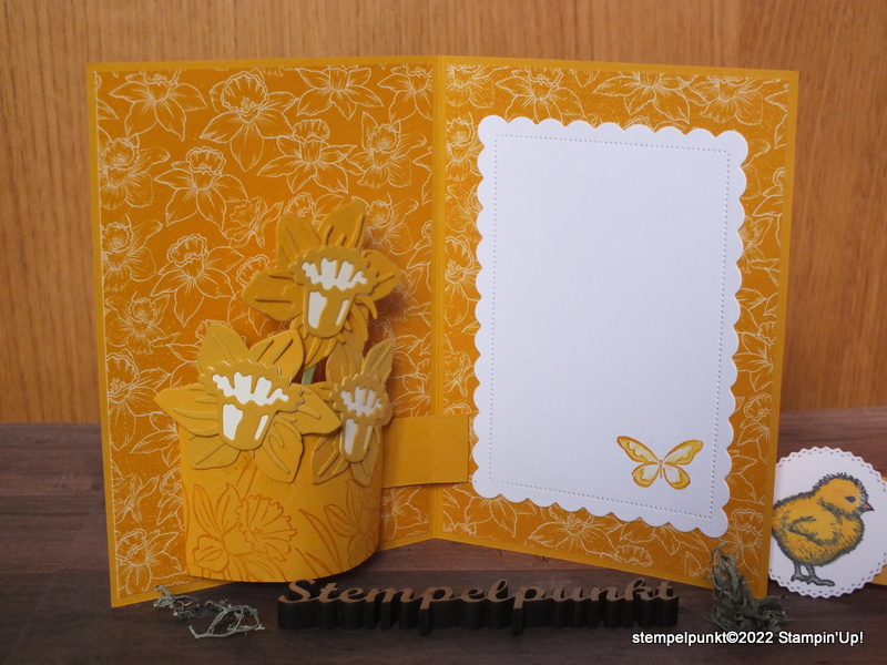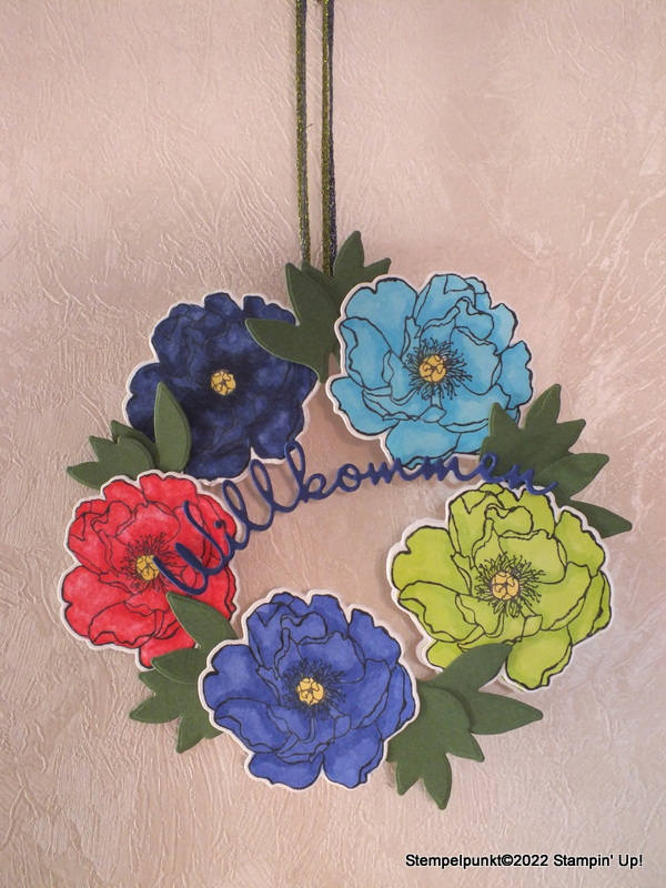 Verwendet habe ich das Stempelset ‚Alles Glück‘ mit den passenden Stanzformen ‚Blühendes Glück‘. Koloriert wurde mit den Stampin‘ Blends in den neuen In Colors 2022-2024.