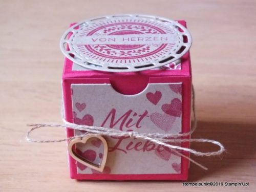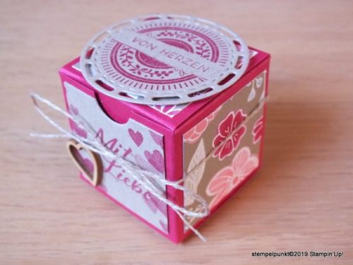 Zur Zeit bin ich total verliebt in die Produkte zum Valentinstag aus dem neuen Frühjahr-/ Sommerkatalog. Deshalb zeige ich euch die Box als kleines Geschenk oder als Tischdeko zum Valentinstag.