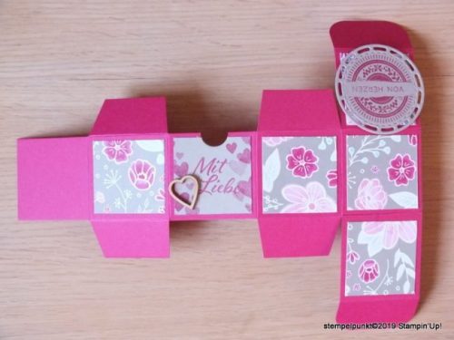 Am ersten und dritten Sonntag eines Monats gibt es einen Beitrag des Stempelzeit Teams mit einer Anleitung, die individuell von allen teilnehmenden Demonstratorinnen umgesetzt wird. Die heutige Anleitung für eine ‚Fold Flat Box- ohne Kleben‘ kommt von mir.