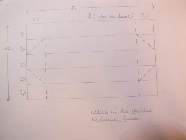 Diese Verpackung ist ganz schnell gemacht und kommt ohne Kleber aus- wenn man vom Etikett absieht. Vom Spruch her eignet sie sich für Valentinstag, Vatertag oder viele andere Gelegenheiten. Das Designerpapier ‚Ganz Gentleman‘ ist ideal für Herrengeschenke oder -karten. Meine Verpackung ist auf die Größe eines Labellos abgestimmt. Wer etwas Längeres verpacken möchte, muss die Maße ändern. Nach dieser Skizze könnt ihr arbeiten: